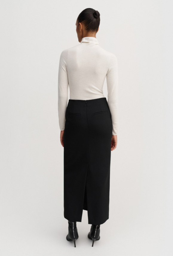 Bay Skirt is crafted from a refined woven blend with a smooth hand feel and elegant structure. Tailored to a sleek, ankle-length column silhouette with a back split and discreet side pockets. Finished with a smooth lining for a refined fit.