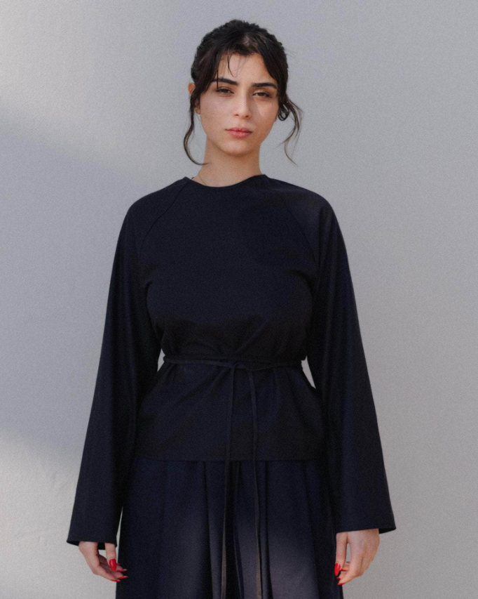 Baserange AW26 - Long Sleeve Apron Top - Wild Silk - Black
